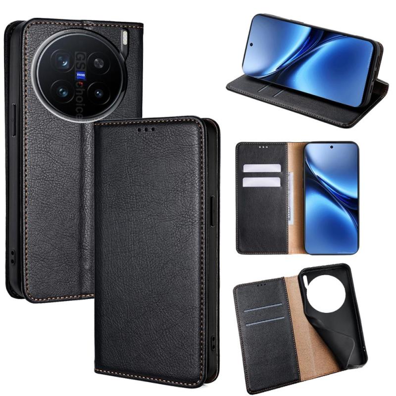 Θήκη τηλεφώνου για vivo X200 Pro 5G, Μαγνητική Δερμάτινη, Στιλ Λάδι Γυαλιστερό, Μονόχρωμη (Μαύρο)
