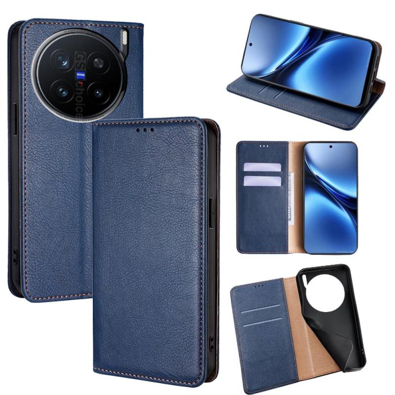 Θήκη τηλεφώνου για vivo X200 Pro 5G, Μαγνητική Δερμάτινη, Στιλ Λάδι Γυαλιστερό, Μονόχρωμη (Μπλε)