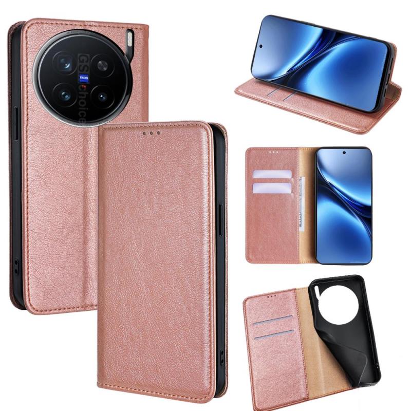 Θήκη τηλεφώνου για vivo X200 Pro 5G, Μαγνητική Δερμάτινη, Στιλ Λάδι Γυαλιστερό, Μονόχρωμη (Ροζ χρυσός)