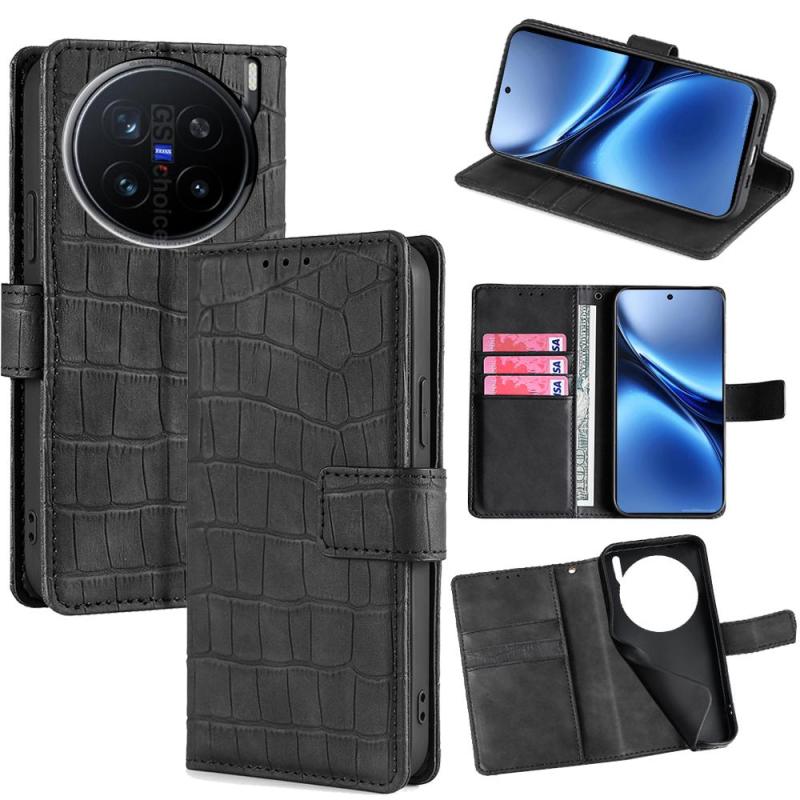 For vivo X200 Pro 5G Skin Feel Crocodile Magnetic Clasp Leather Phone Case(Black)