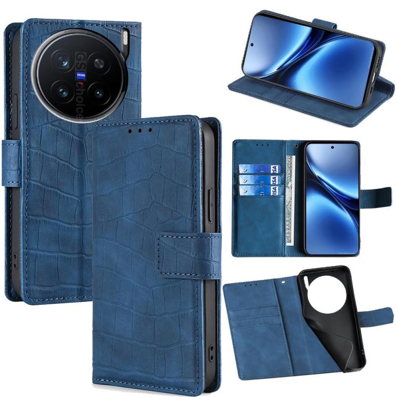 For vivo X200 Pro 5G Skin Feel Crocodile Magnetic Clasp Leather Phone Case(Blue)