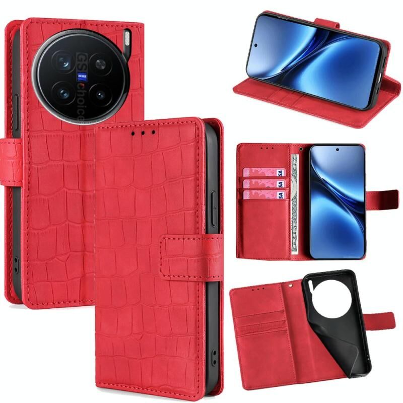 Θήκη τηλεφώνου δερμάτινη με μαγνητικό κούμπωμα και υφή κροκόδειλου για vivo X200 Pro 5G (Κόκκινο)