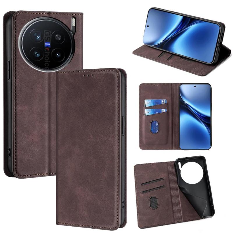 For vivo X200 Pro 5G Skin Feel Magnetic Leather Phone Case(Dark Brown)