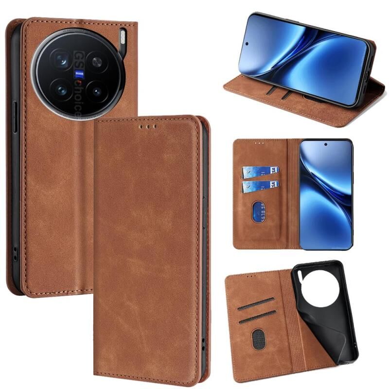 Θήκη τηλεφώνου από δέρμα με μαγνητική αίσθηση για vivo X200 Pro 5G (Σκούρο Καφέ)