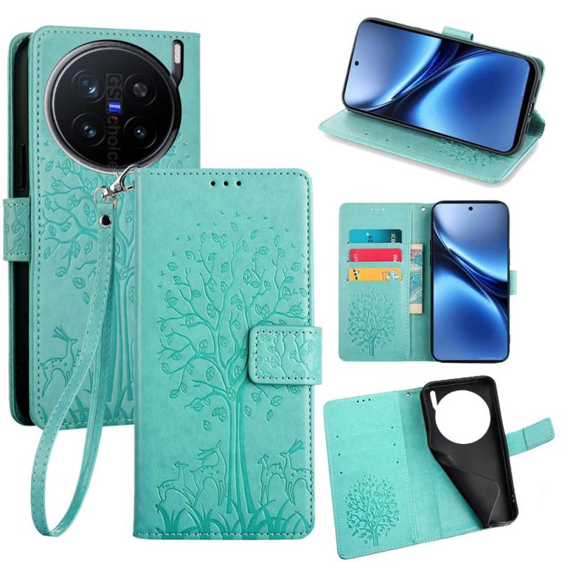For vivo X200 Pro 5G Tree & Deer Embossed Leather Phone Case(Green)