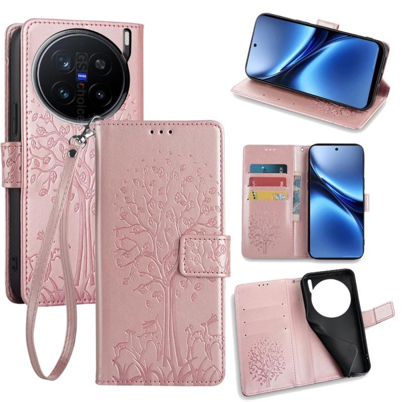 For vivo X200 Pro 5G Tree & Deer Embossed Leather Phone Case(Rose Gold)