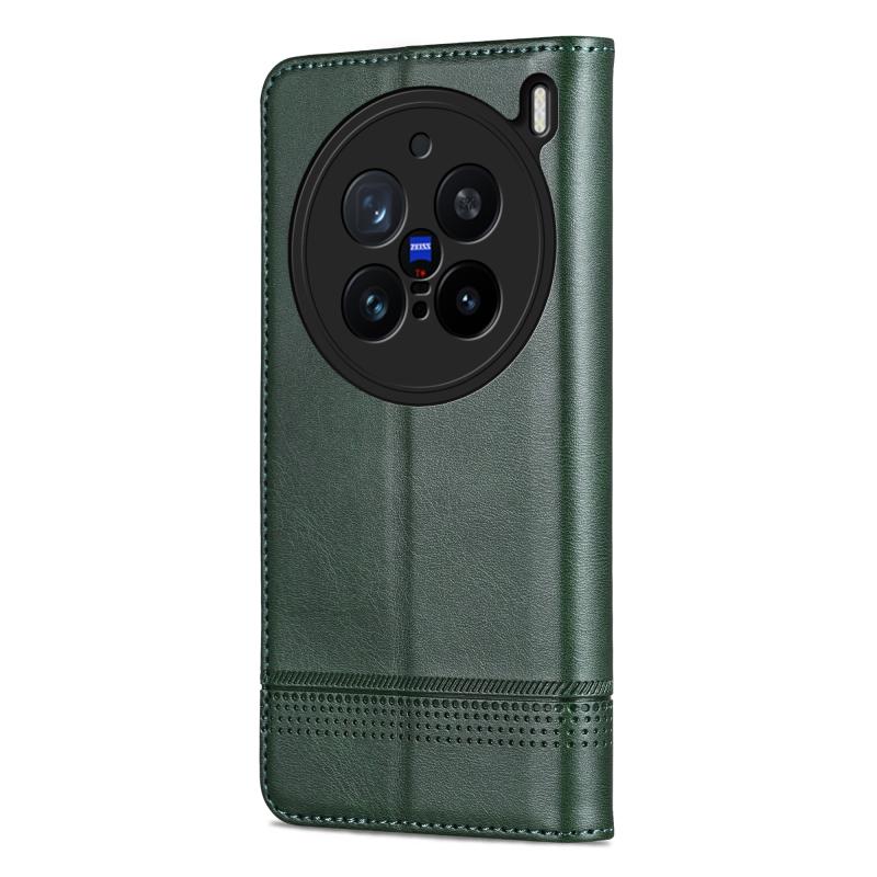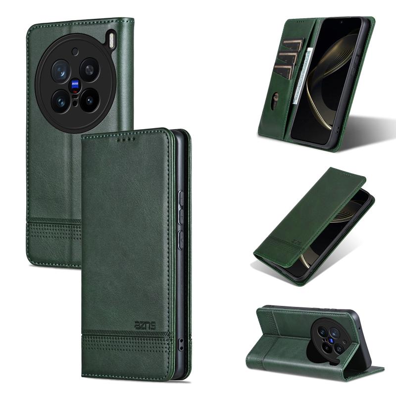 For vivo X200 Pro AZNS Magnetic Calf Texture Leather Phone Case(Dark Green) (AZNS)