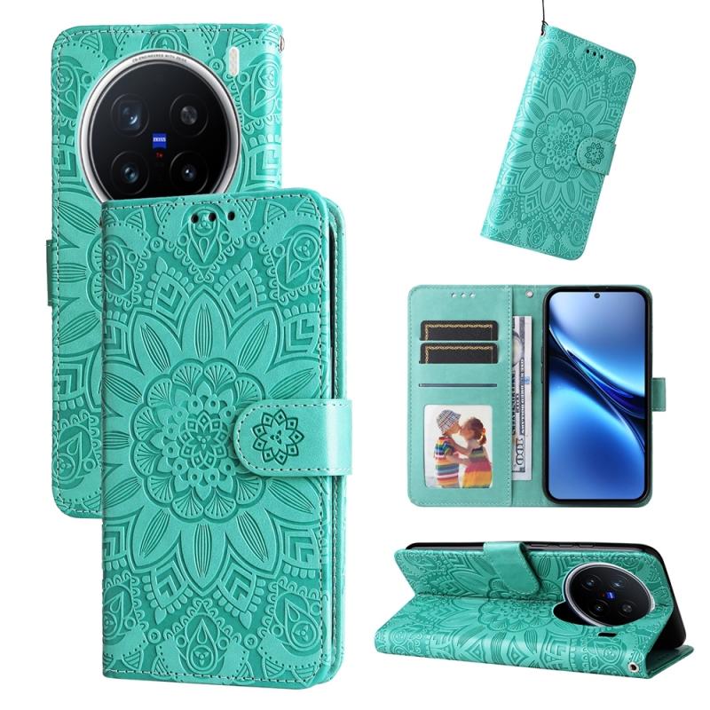 Θήκη τηλεφώνου από δέρμα με ανάγλυφο ηλίανθο για vivo X200 Pro (Κόκκινο)