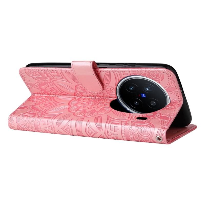 For vivo X200 Pro Embossed Sunflower Leather Phone Case(Rose Gold)
