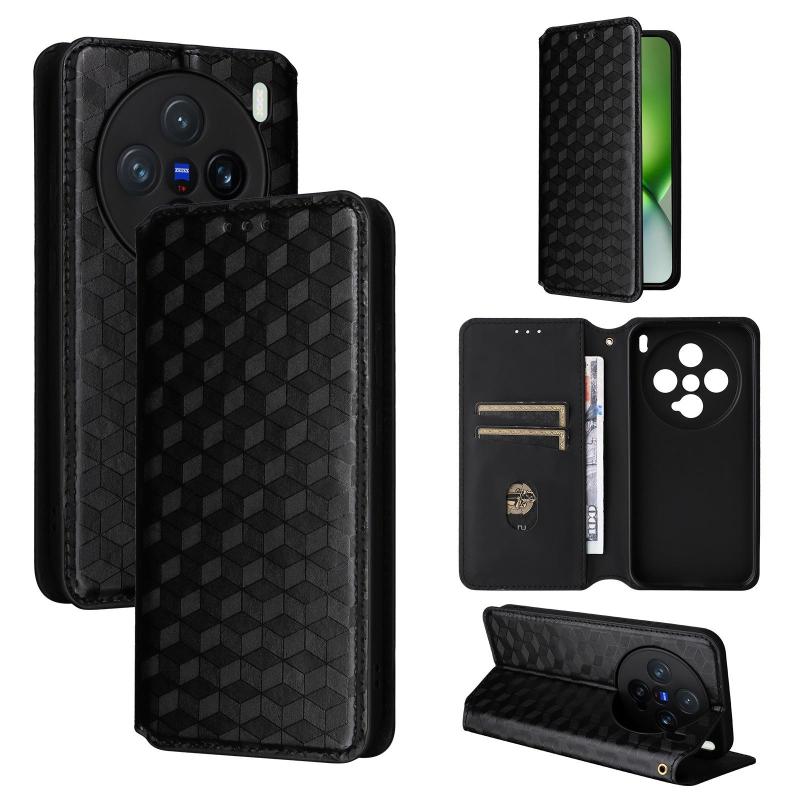 For vivo X200 Pro mini 5G Cubic Grid Texture Flip Leather Phone Case(Black)