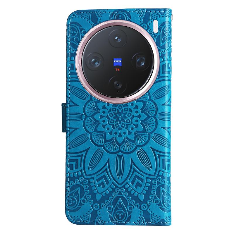 For vivo X200 Pro mini Embossed Sunflower Leather Phone Case(Blue)