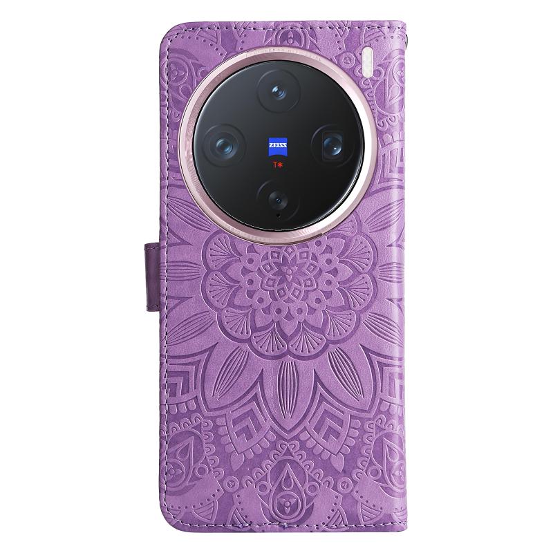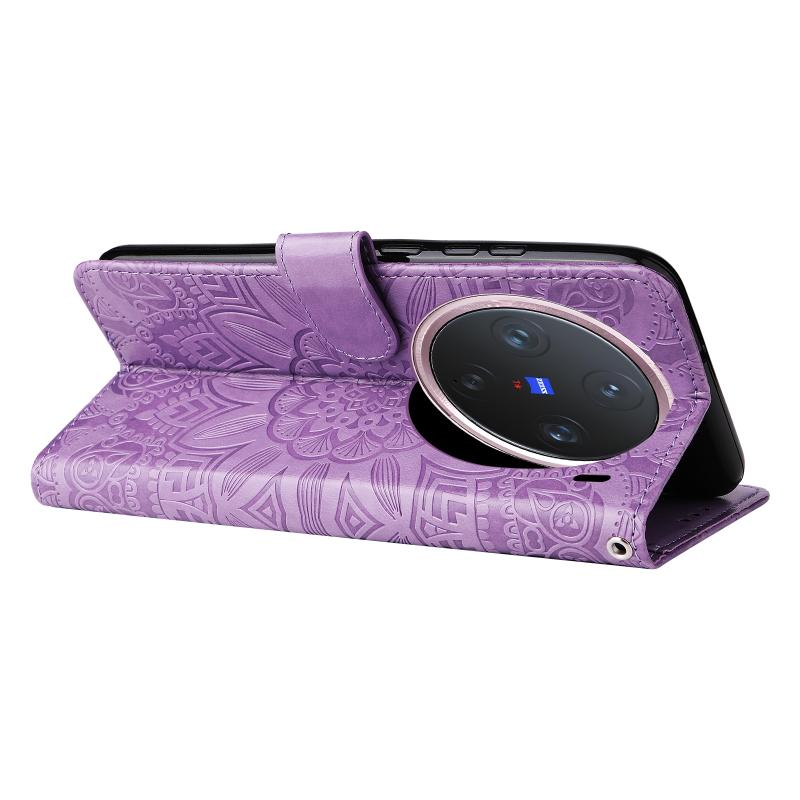 For vivo X200 Pro mini Embossed Sunflower Leather Phone Case(Purple)