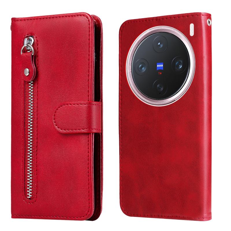 For vivo X200 Pro mini Fashion Calf Texture Zipper Leather Phone Case(Red)