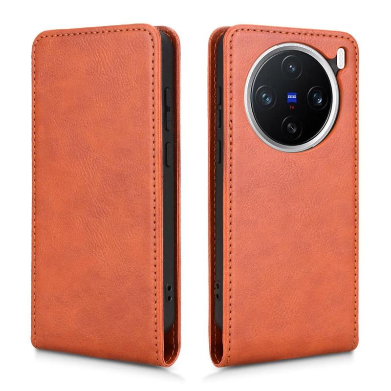 For vivo X200 Pro mini Magnetic Vertical Flip Leather Phone Case(Brown)
