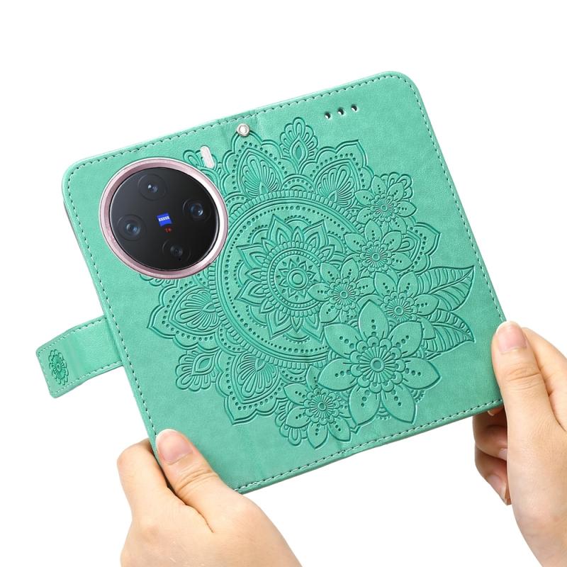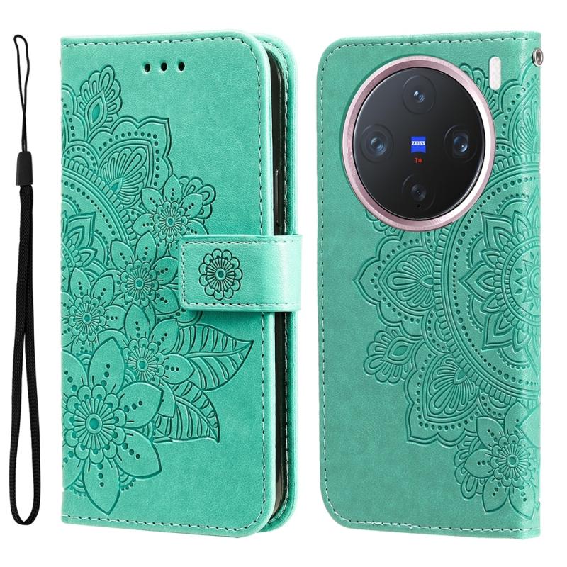 For vivo X200 Pro mini Seven-petal Flowers Embossing Leather Phone Case(Green)