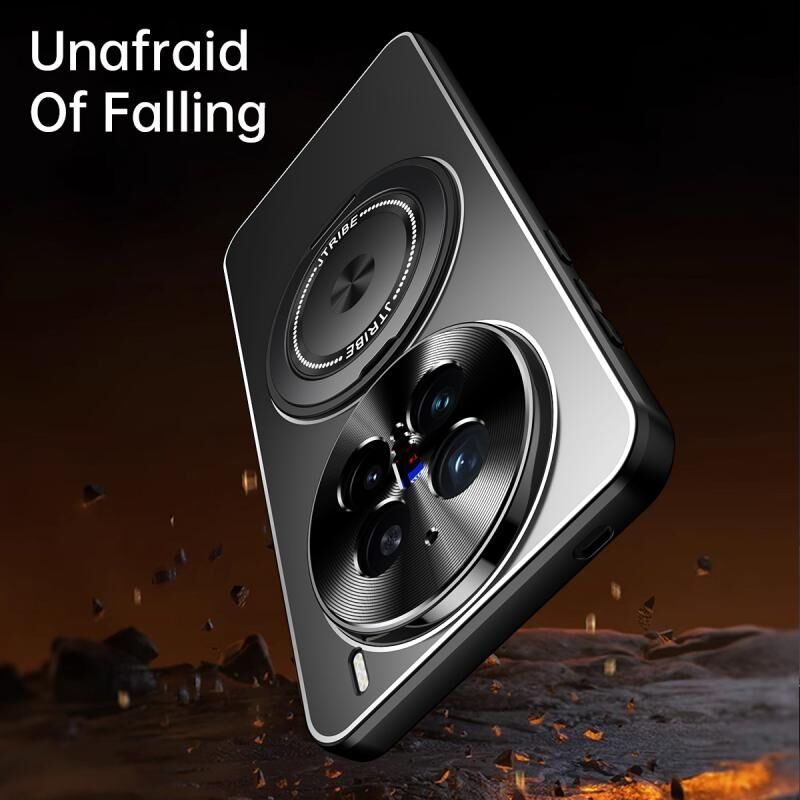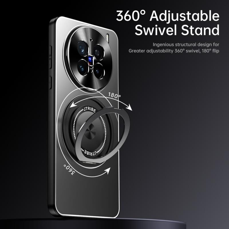 Για το vivo X200 Pro Περιστρεφόμενη θήκη τηλεφώνου με παγωμένο μέταλλο (μαύρο)