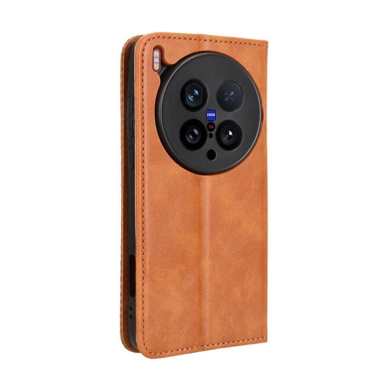 For vivo X200 Ultra 5G Magnetic Buckle Retro Texture Leather Phone Case(Brown)