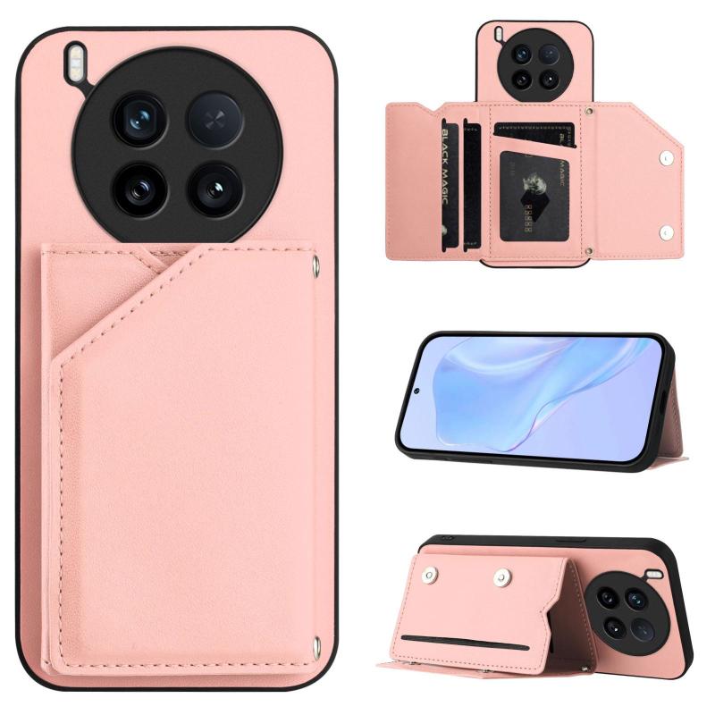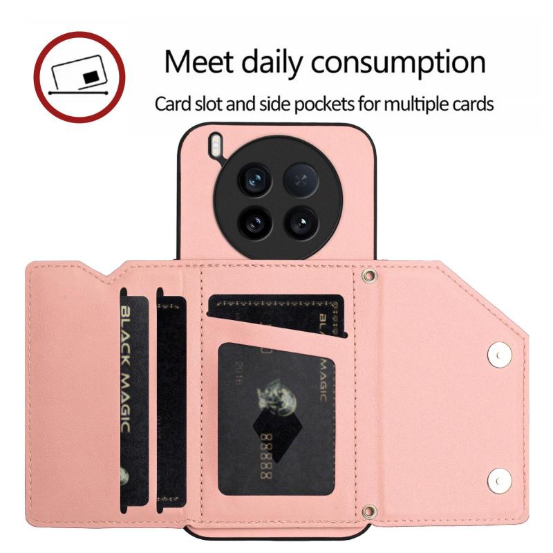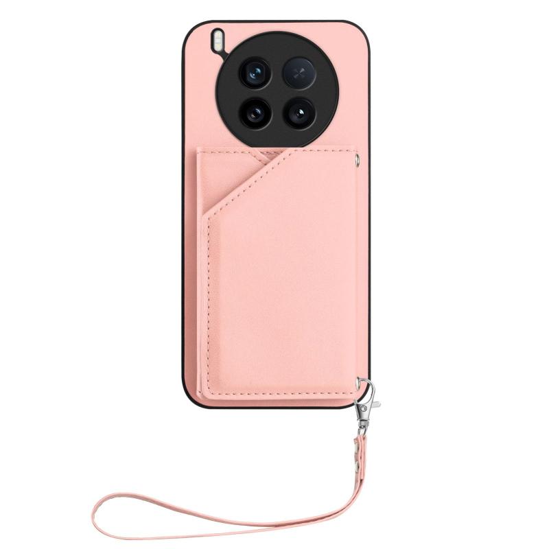 For vivo X200 Ultra Skin Feel Four Card Slots Phone Case with Wrist Strap(Pink)