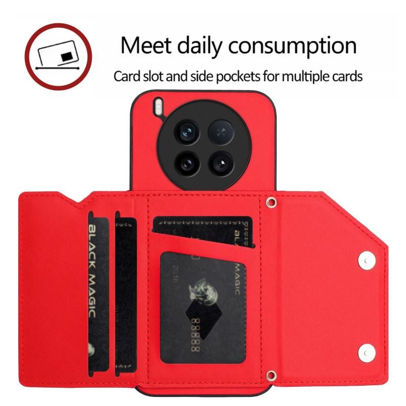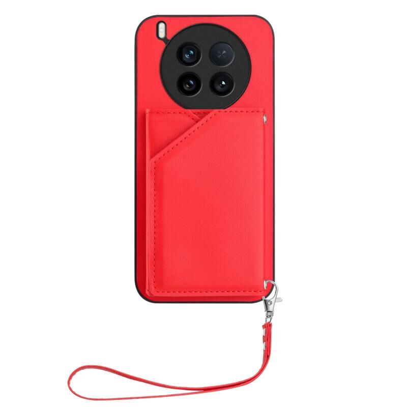 Θήκη τηλεφώνου για vivo X200 Ultra με αίσθηση δέρματος, τέσσερις θήκες για κάρτες και λουρί καρπού (Ροζ)
