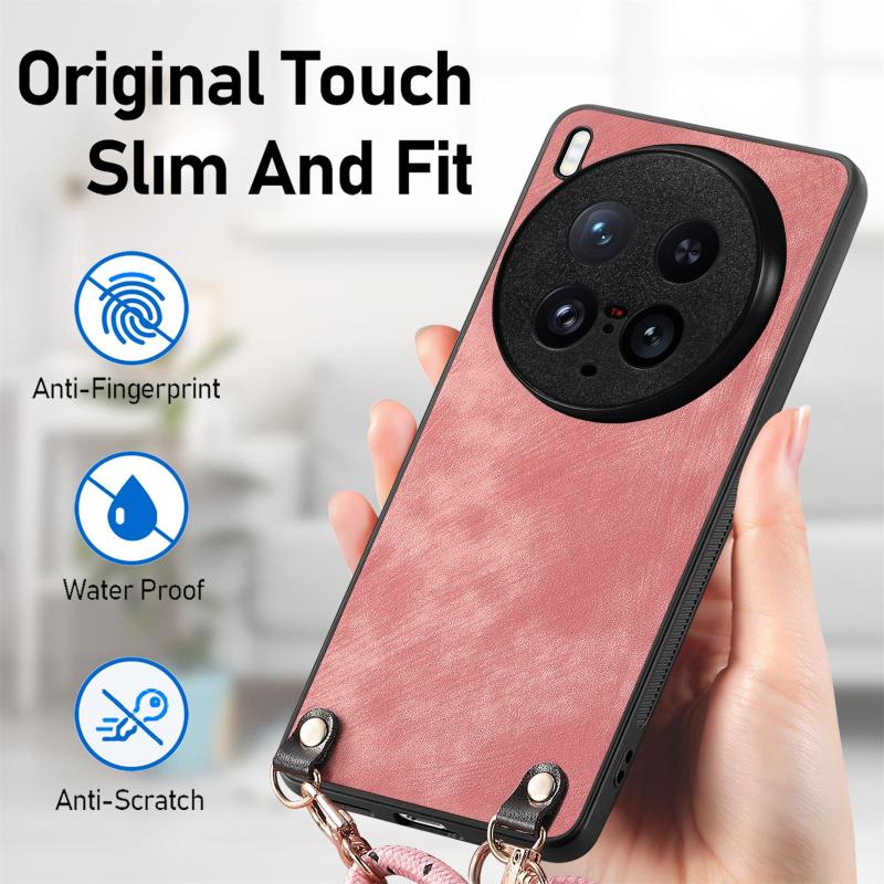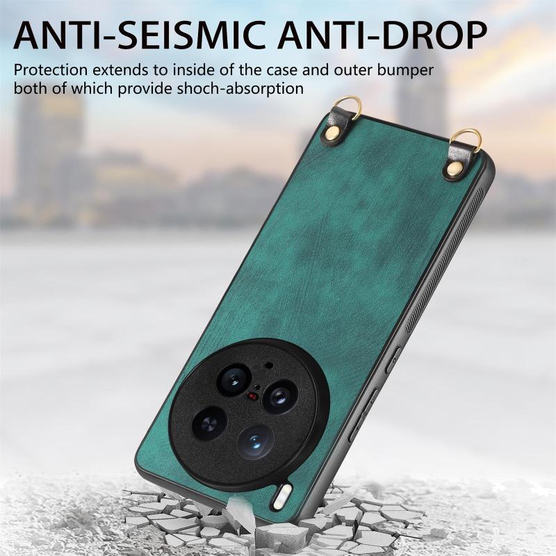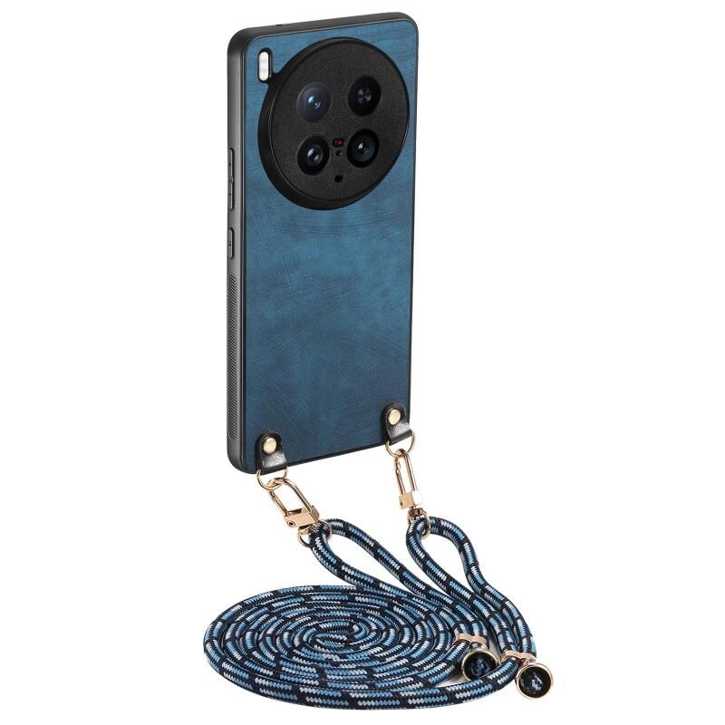 Θήκη κινητού τηλεφώνου για vivo X200 Ultra με δερμάτινη πλάτη PC Vintage και λουρί crossbody (Μπλε)