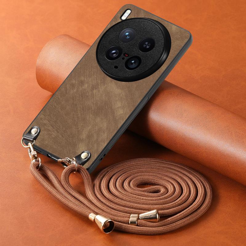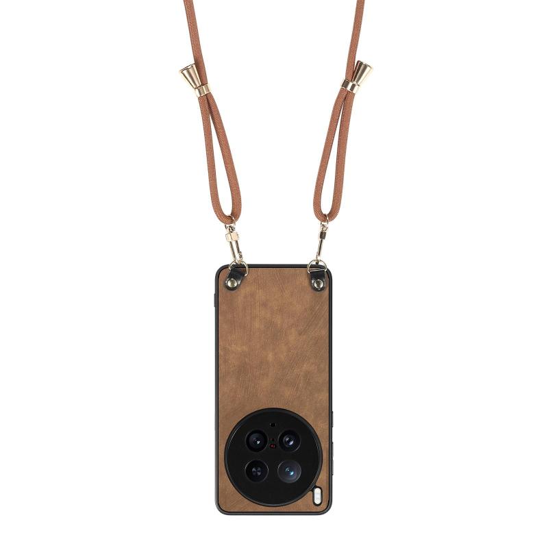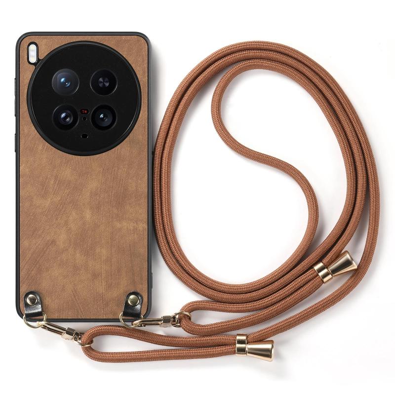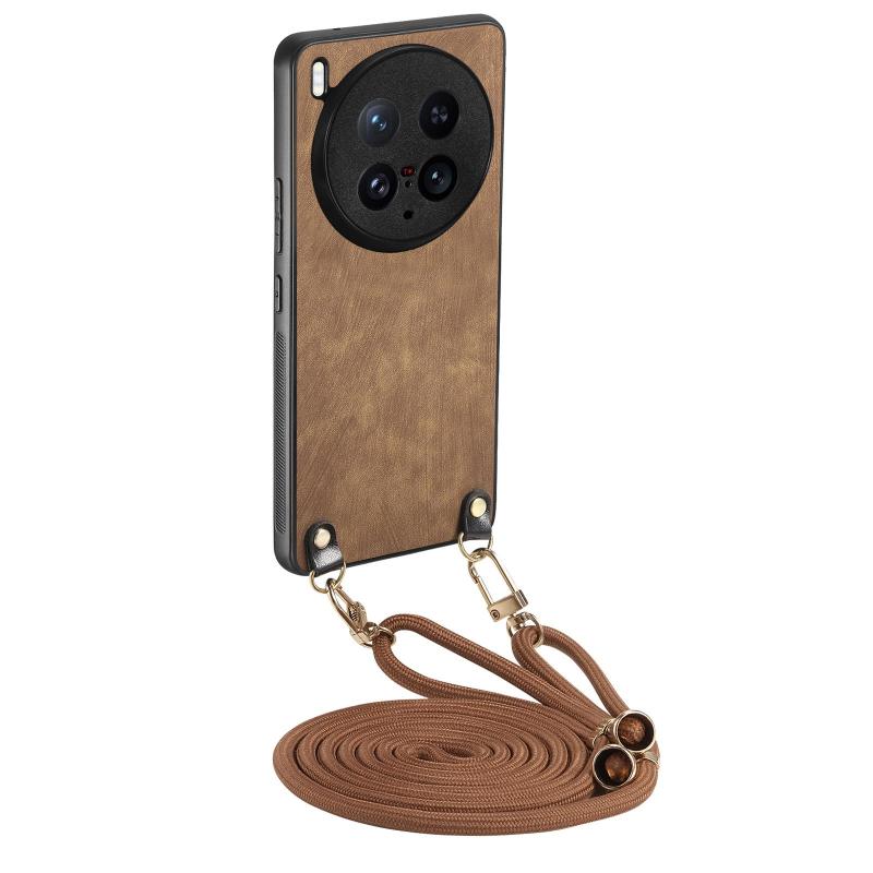 Θήκη κινητού τηλεφώνου για vivo X200 Ultra με δερμάτινη πλάτη PC Vintage και λουρί crossbody (Μπλε)