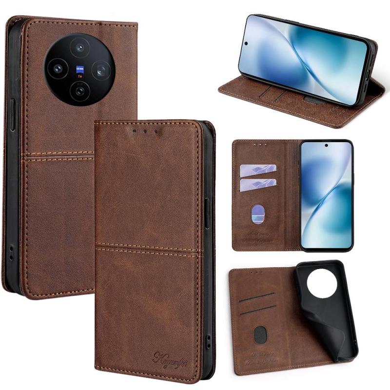Θήκη τηλεφώνου από μαγνητικό δέρμα με υφή αγελάδας για vivo X200s 5G (Σκούρο καφέ)