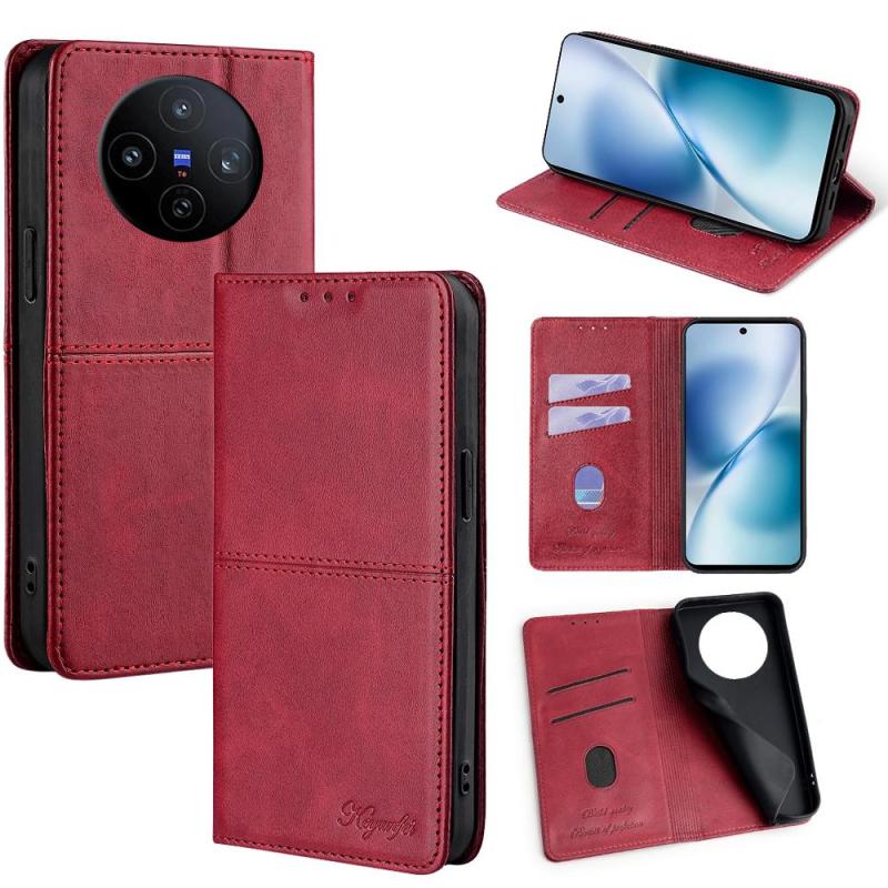 Θήκη τηλεφώνου από μαγνητικό δέρμα με υφή αγελάδας για vivo X200s 5G (Κόκκινο)