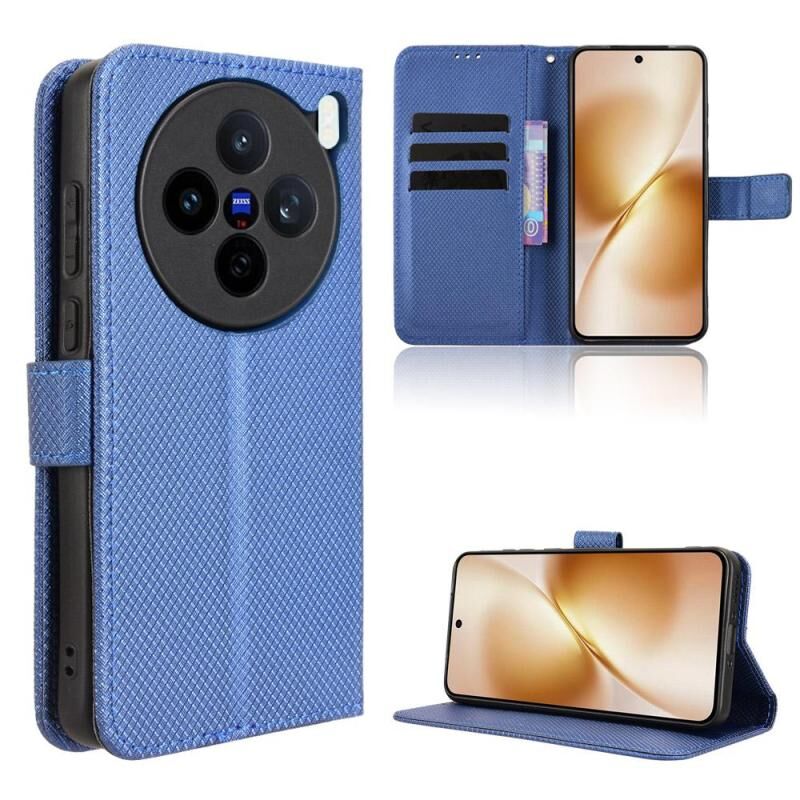 Θήκη τηλεφώνου για vivo X200s 5G από δέρμα με διαμαντένια υφή (Μαύρο)