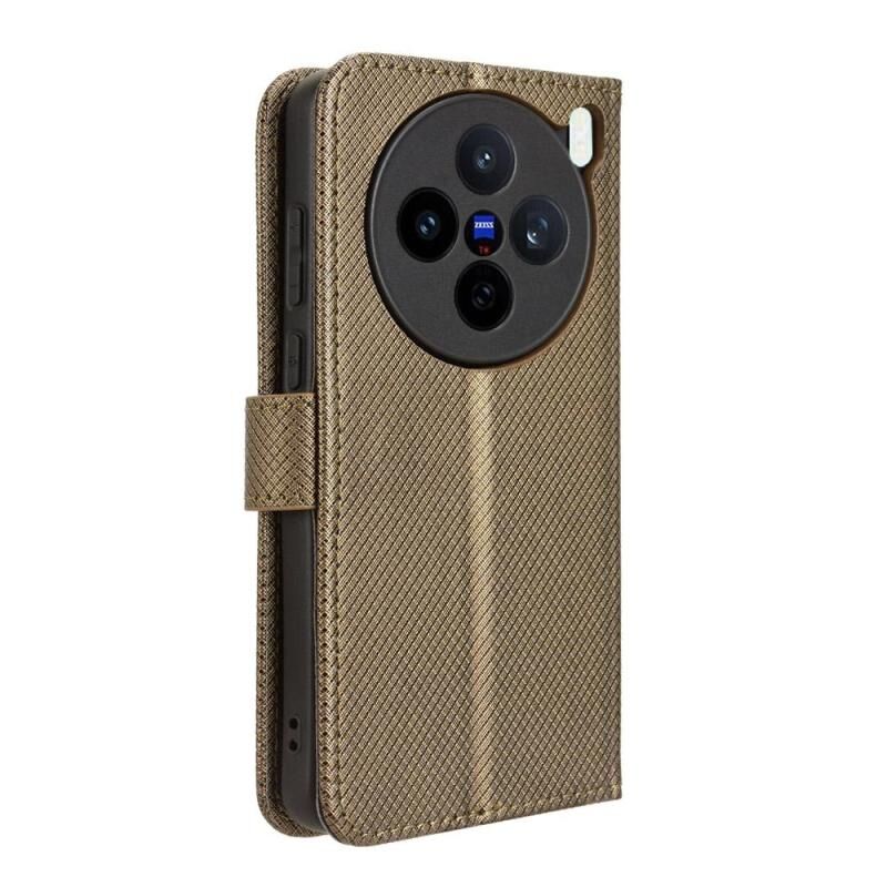 Θήκη τηλεφώνου για vivo X200s 5G από δέρμα με διαμαντένια υφή (Μαύρο)