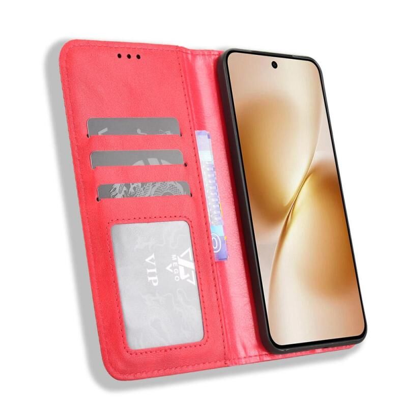 Θήκη τηλεφώνου από δέρμα με ανάγλυφη υφή και μαγνητικό κούμπωμα για vivo X200s 5G (Κόκκινο)