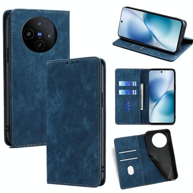 Θήκη τηλεφώνου από δέρμα με μαγνήτη και αντι-κλοπής RFID για vivo X200s 5G (Μπλε)