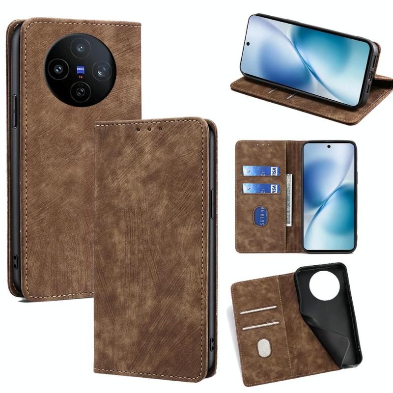 Θήκη τηλεφώνου από δέρμα με μαγνήτη και αντι-κλοπής RFID για vivo X200s 5G (Καφέ)