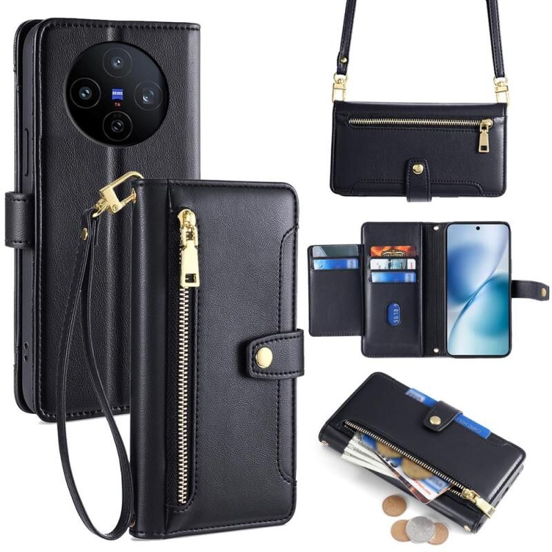 Θήκη τηλεφώνου δερμάτινη με φερμουάρ και σχέδιο αρνιού για vivo X200s 5G (Μαύρο)