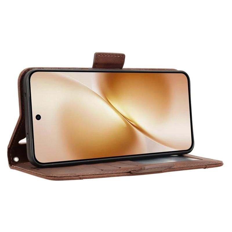 Θήκη τηλεφώνου από δέρμα με υφή μοσχαριού και θήκες καρτών για vivo X200s 5G (Ροζ)