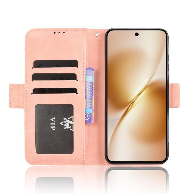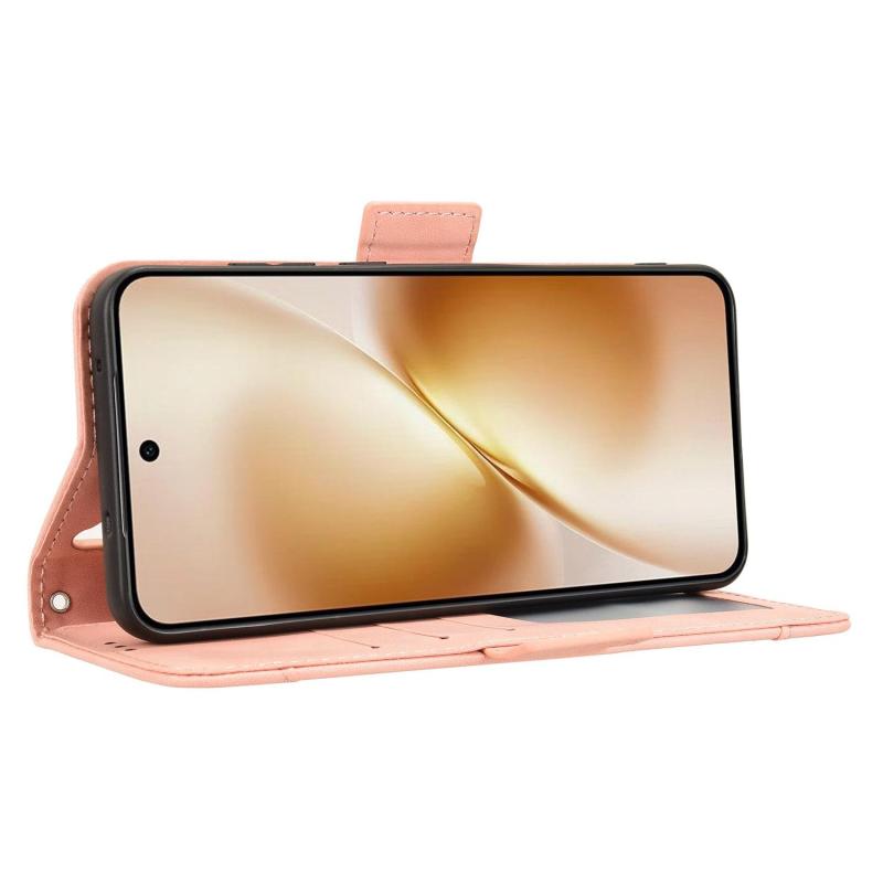 Θήκη τηλεφώνου από δέρμα με υφή μοσχαριού και θήκες καρτών για vivo X200s 5G (Ροζ)