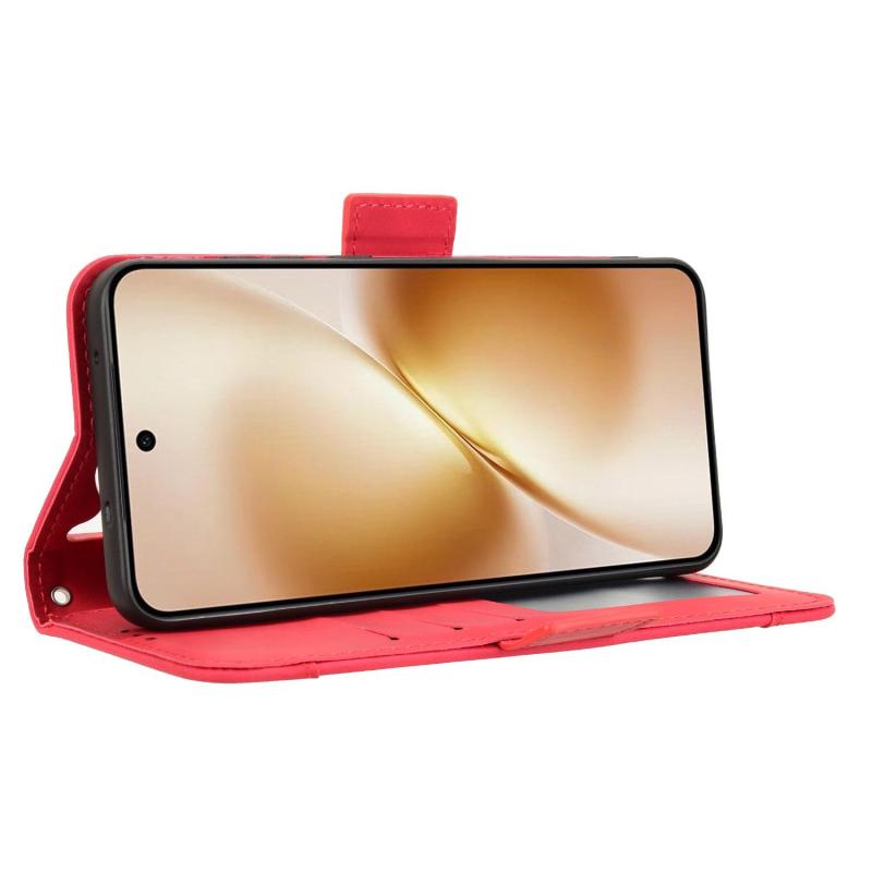 Θήκη τηλεφώνου από δέρμα με υφή μοσχαριού και θήκες καρτών για vivo X200s 5G (Ροζ)