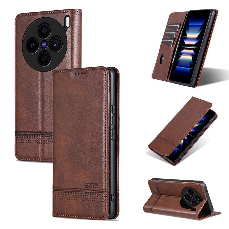 For vivo X200s AZNS Magnetic Calf Texture Leather Phone Case(Dark Brown) (AZNS)