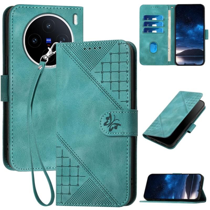 Θήκη τηλεφώνου δερμάτινη με ανάγλυφο σχέδιο Grid Butterfly για vivo X200s με κορδόνι (Σκούρο Μπλε)