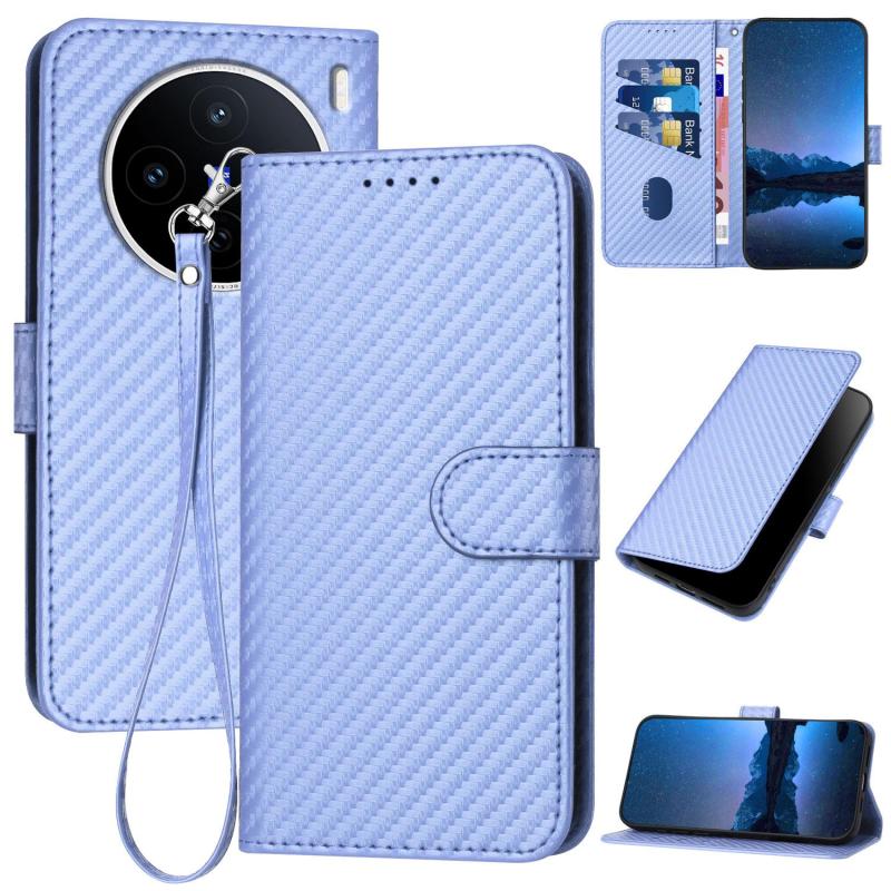 Θήκη τηλεφώνου για vivo X200s YX0070 από δέρμα με αγκράφα από ανθρακονήματα και κορδόνι (Ανοιχτό Μπλε)