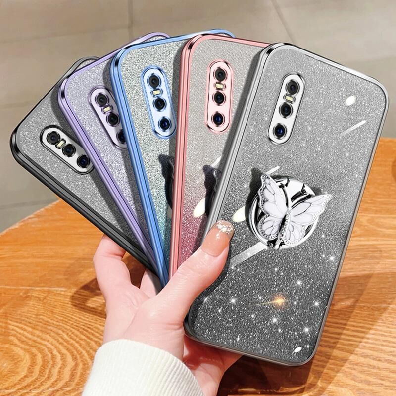 Θήκη τηλεφώνου TPU με σχέδιο πεταλούδας από γκλίτερ και διαβαθμισμένο χρώμα για vivo X27 (Ροζ)