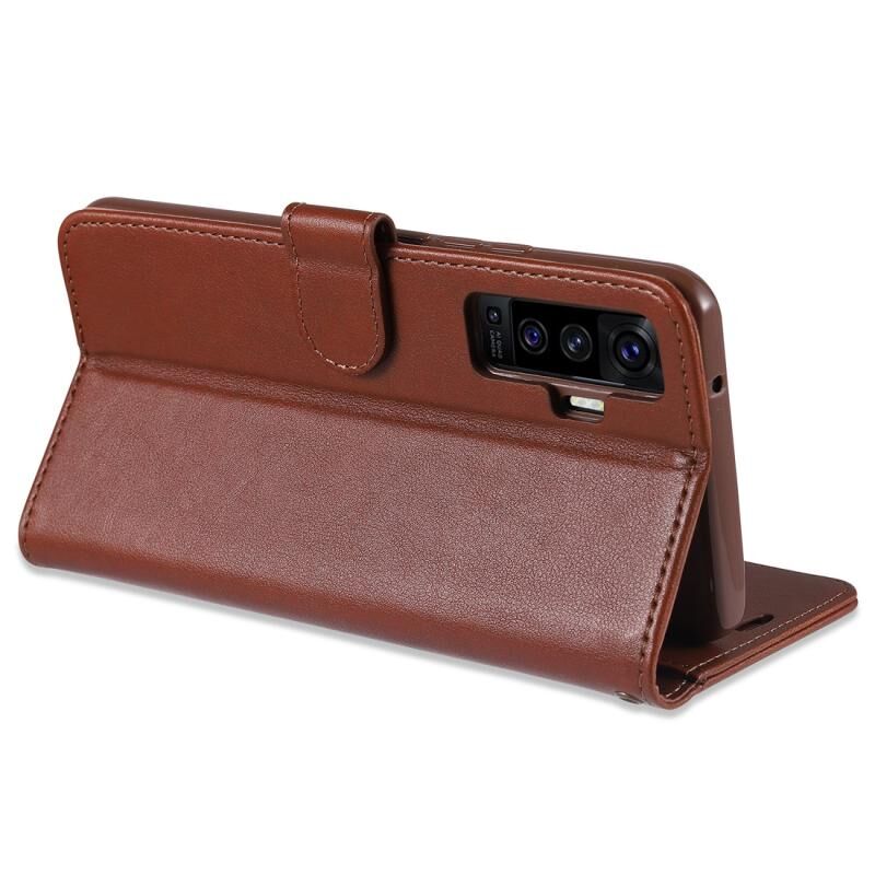 Θήκη δέρματος οριζόντιας αναδίπλωσης με υφή δέρματος προβάτου για Vivo X50 AZNS με βάση & υποδοχές καρτών & πορτοφόλι (Καφέ) (Καφέ)