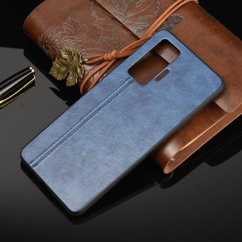 Για το Vivo X50 Pro Shockproof Ράψιμο μοτίβο αγελάδας δέρμα PC + PU + TPU υπόθεση (μπλε)