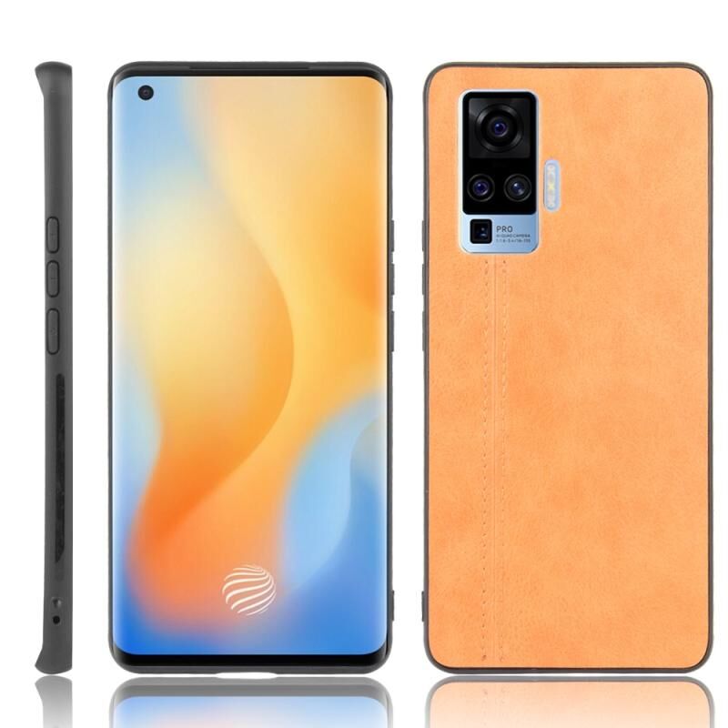 Για το Vivo X50 Pro Shockproof Ράψιμο μοτίβο αγελάδας δέρμα PC + PU + TPU υπόθεση (πορτοκαλί)