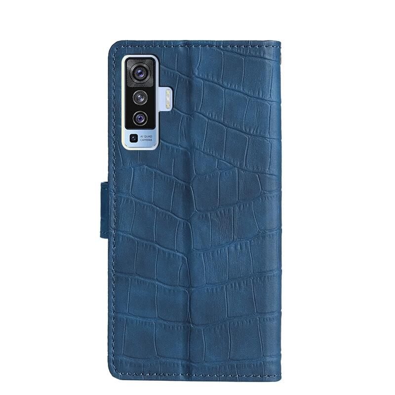 Θήκη για vivo X50 με υφή δέρματος κροκόδειλου, μαγνητικό κούμπωμα, οριζόντια αναδιπλούμενη από δερματίνη PU με βάση & υποδοχές καρτών & πορτοφόλι (Μπλε)