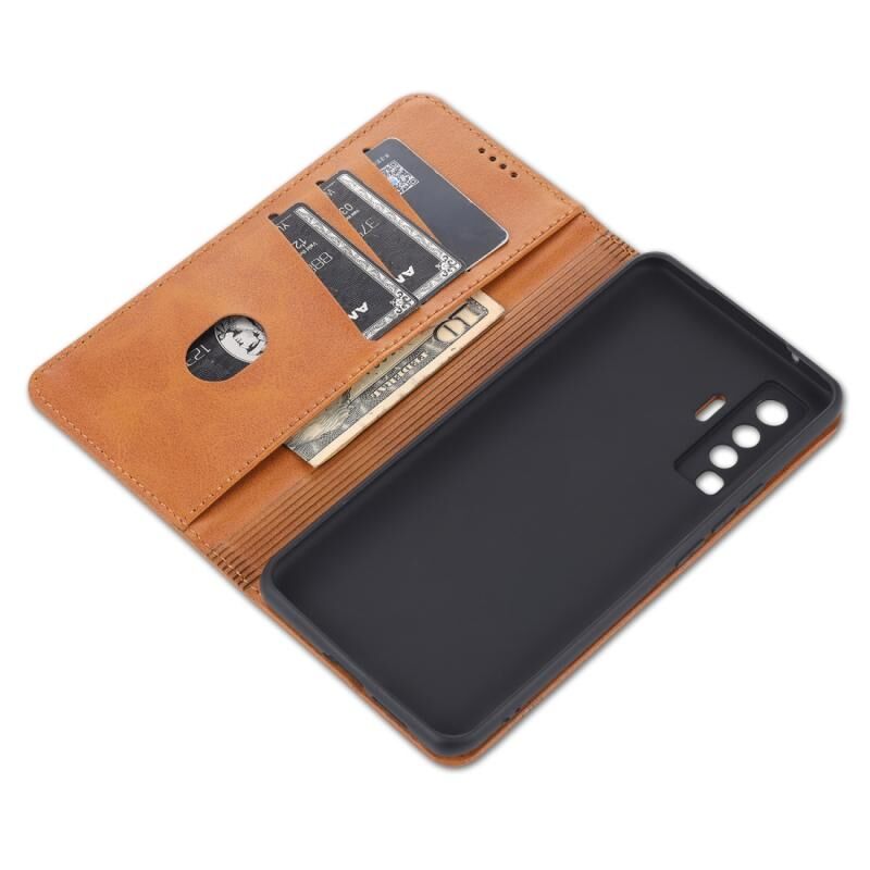 Θήκη δέρματος οριζόντιας αναδίπλωσης με μαγνητική υφή μοσχαριού για vivo X50 / X50 Pro AZNS με υποδοχές καρτών & βάση & πορτοφόλι (Ανοιχτό Καφέ) (AZNS)