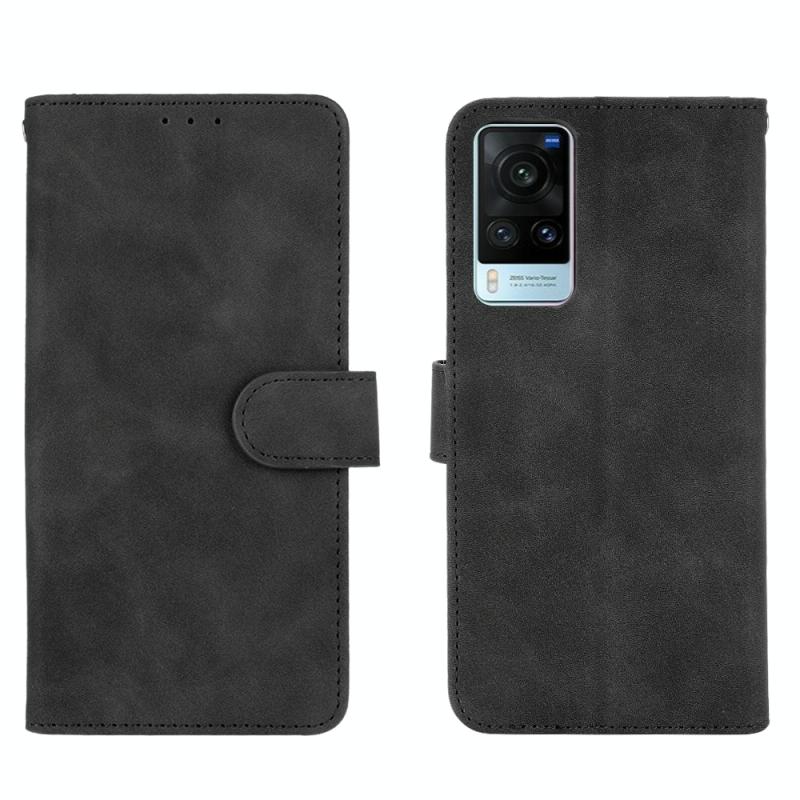 Για vivo X60 5G Θήκη από Δέρμα PU με Υφή Μοσχαριού, Οριζόντια, με Μαγνητικό Κούμπωμα, Αίσθηση Στερεού Χρώματος, με Θήκη & Θήκες Καρτών & Πορτοφόλι (Μαύρο)