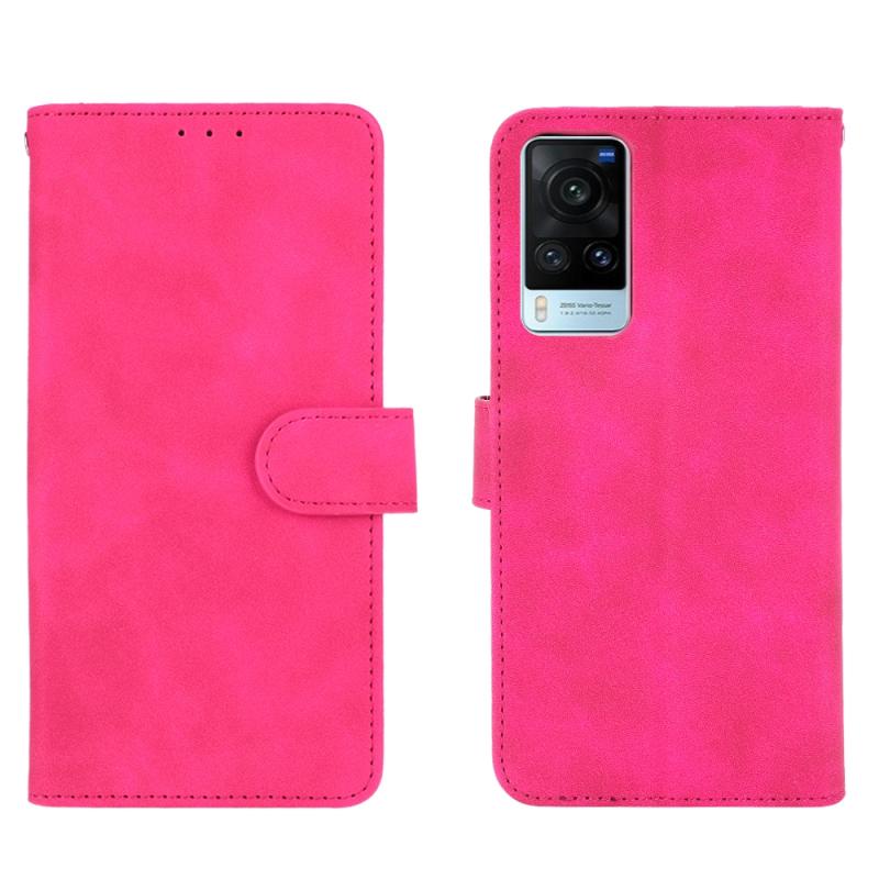 For vivo X60 5G Solid Color Skin Feel Magnetic Buckle Horizontal Flip Calf Texture PU Leather Case with Holder & Card Slots & Wallet(Rose Red)