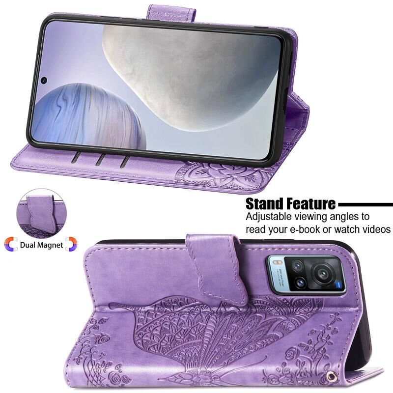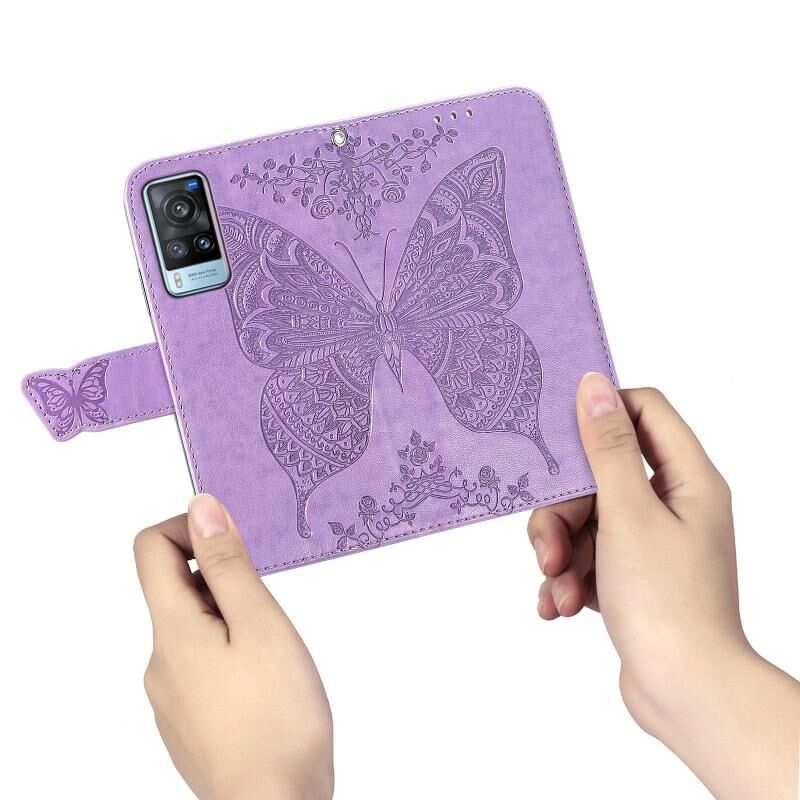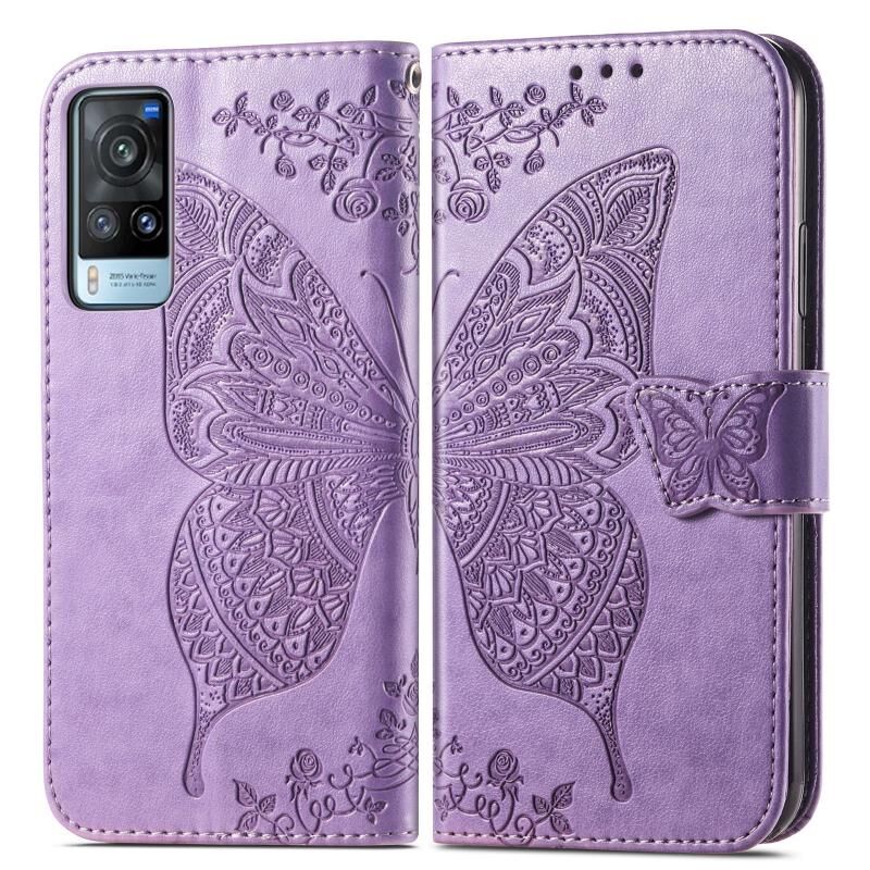 Για το vivo X60 Πεταλούδα αγάπη λουλούδια ανάγλυφο οριζόντια Flip δερμάτινη θήκη με κάτοχο & υποδοχές για κάρτες & πορτοφόλι & κορδόνι (ανοιχτό μωβ)