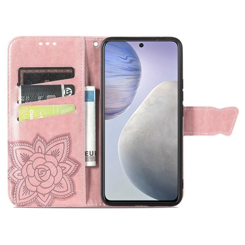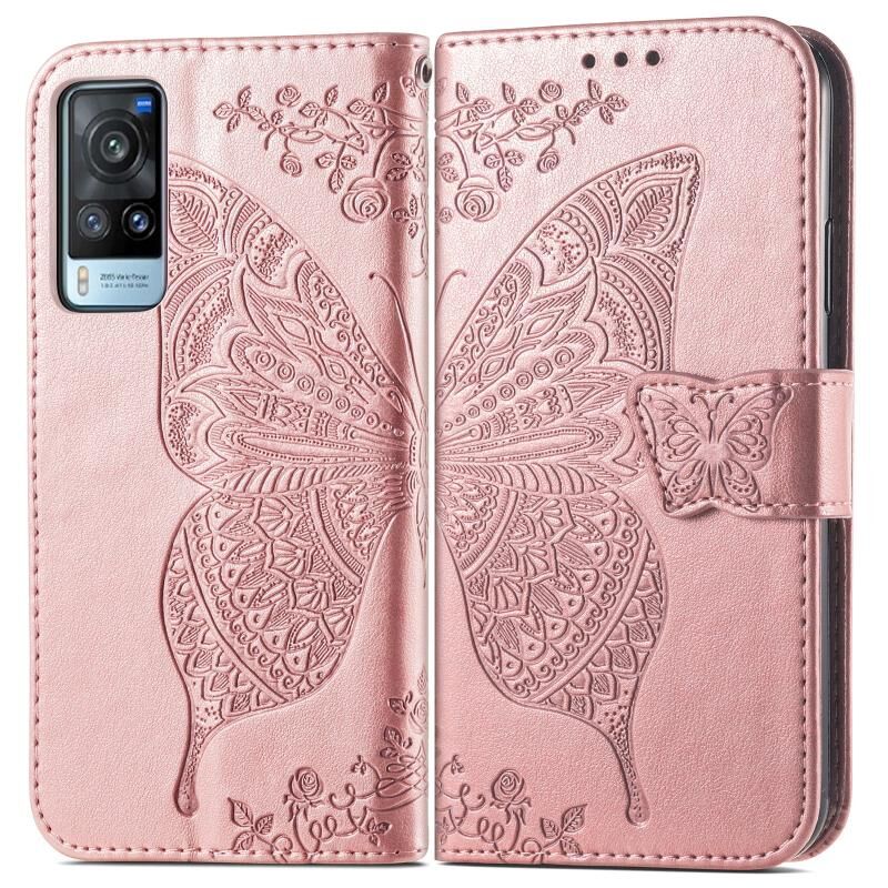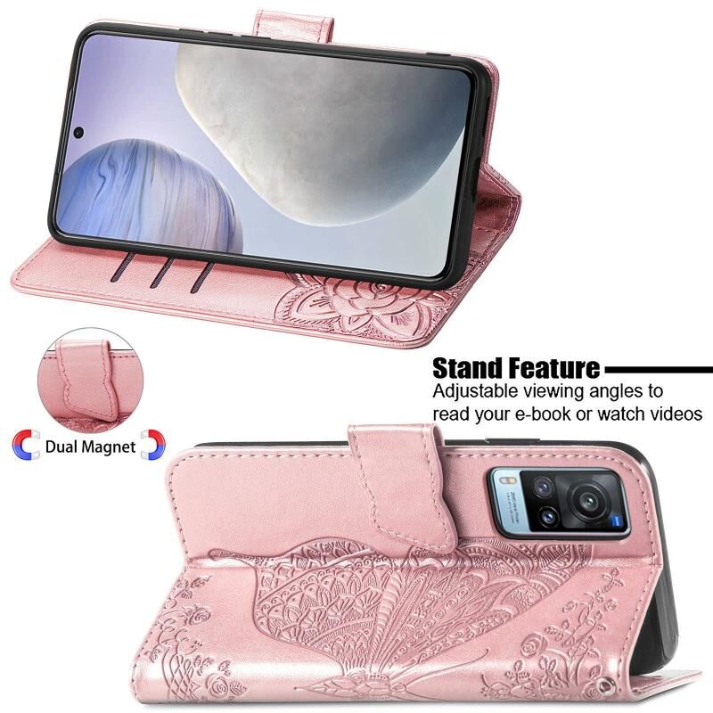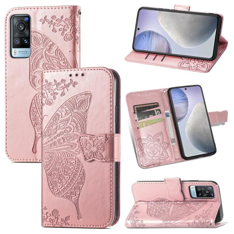 Για το vivo X60 Πεταλούδα αγάπη λουλούδια ανάγλυφο οριζόντια Flip δερμάτινη θήκη με κάτοχο & υποδοχές για κάρτες & πορτοφόλι & κορδόνι (Ροζ χρυσός)