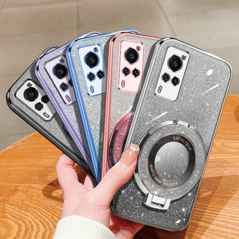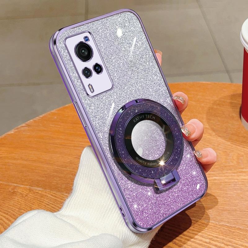 For vivo X60 Plated Gradient Glitter Round Holder TPU Phone Case(Purple)